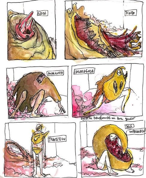这么与众不同的女孩自然有自己内心的小世界,Hunter Schafer 平时在IG上还喜欢分享自己的涂鸦和拼贴作品,有的是以照片为灵感,有的甚至是以她自己为灵感。