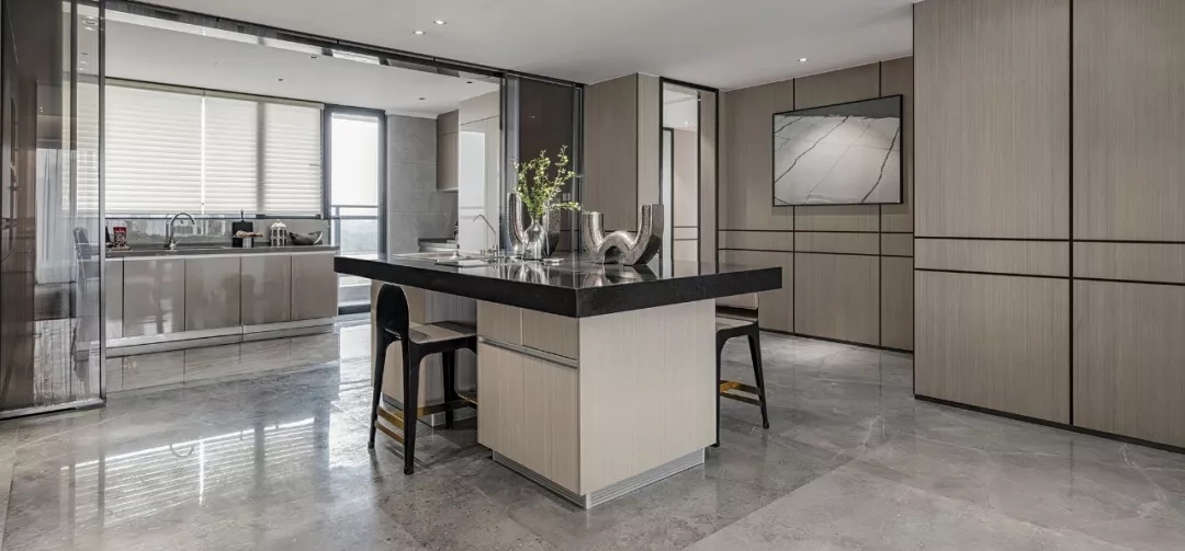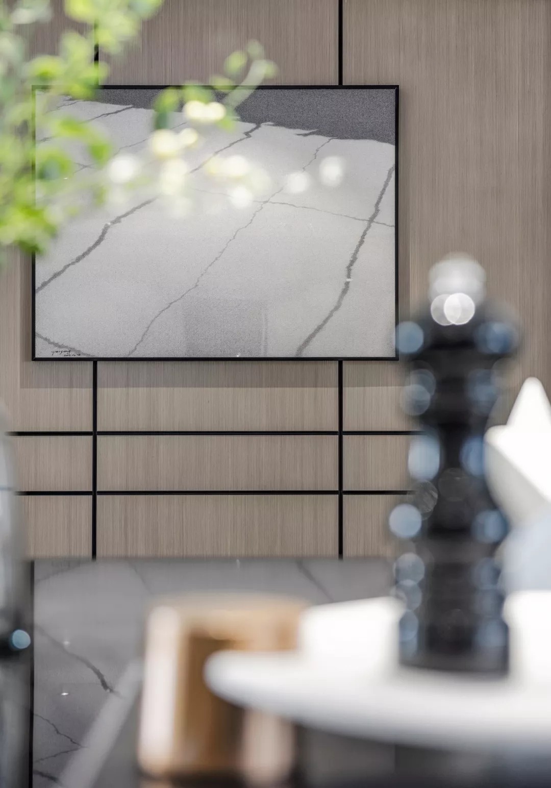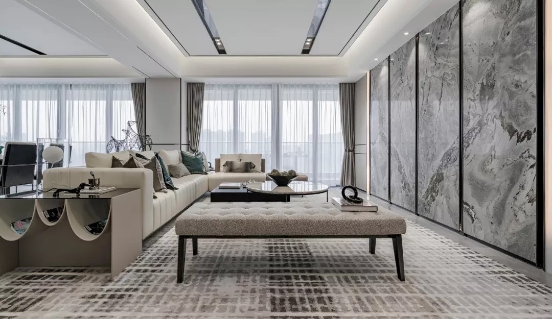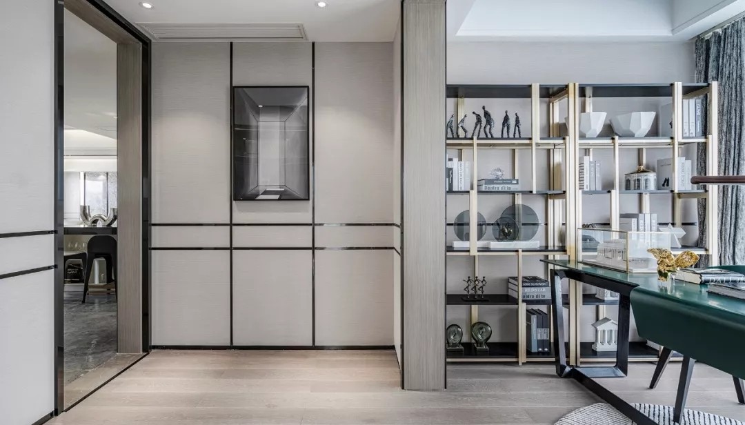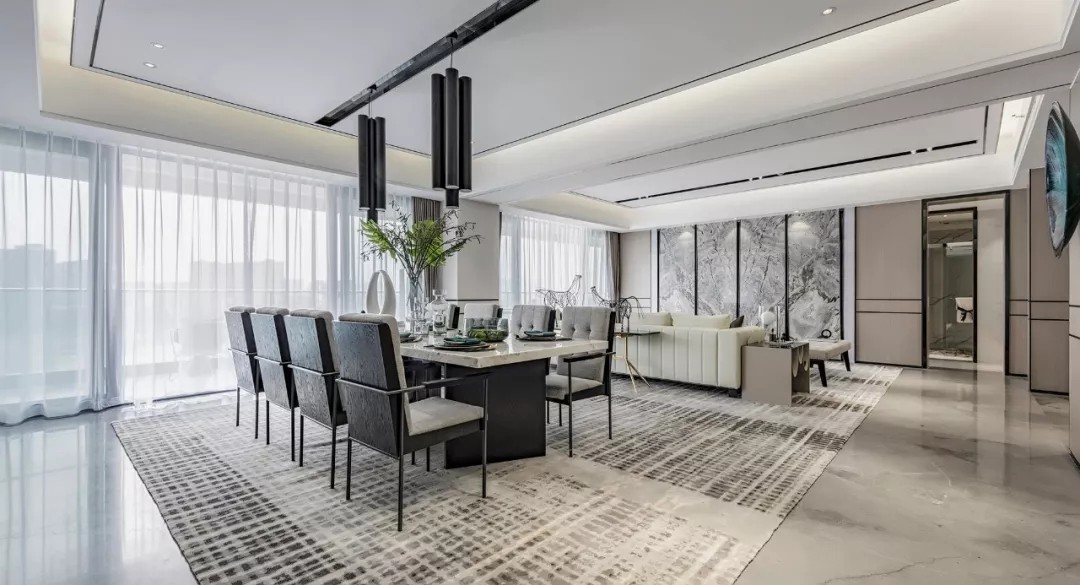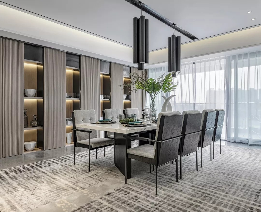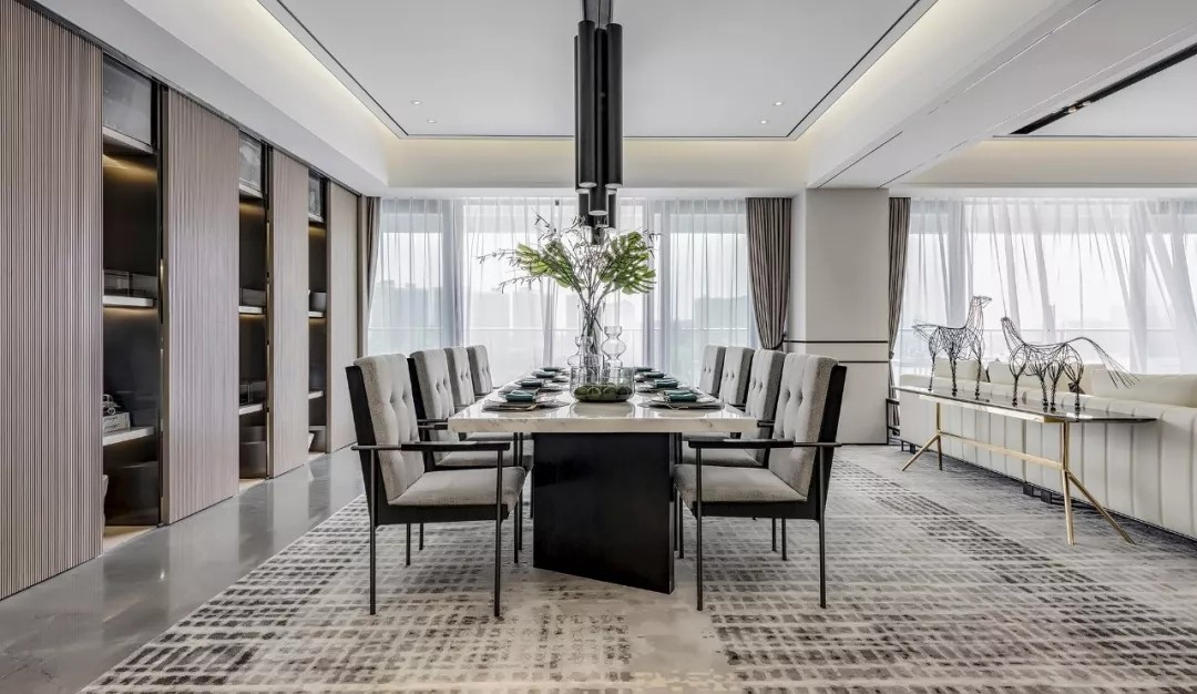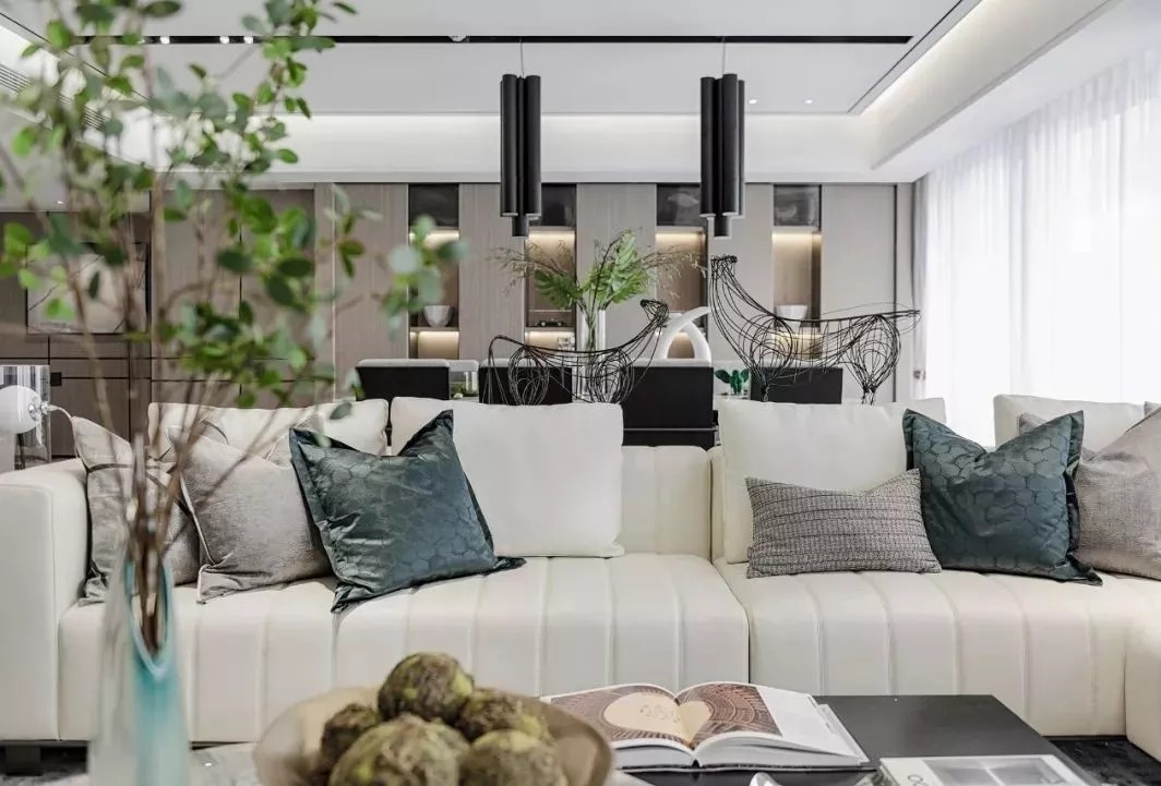空间质感体现在细微处 这些细节并非指反复的雕花 或者多种材质的堆叠 反倒是极其简约的线条与 简单却不匮乏的几何拼接 更能凸显出家的优雅 充满现代感的艺术挂画与雕塑 配以家具硬朗、流畅的线条 共同展现空间恢弘大气的格局