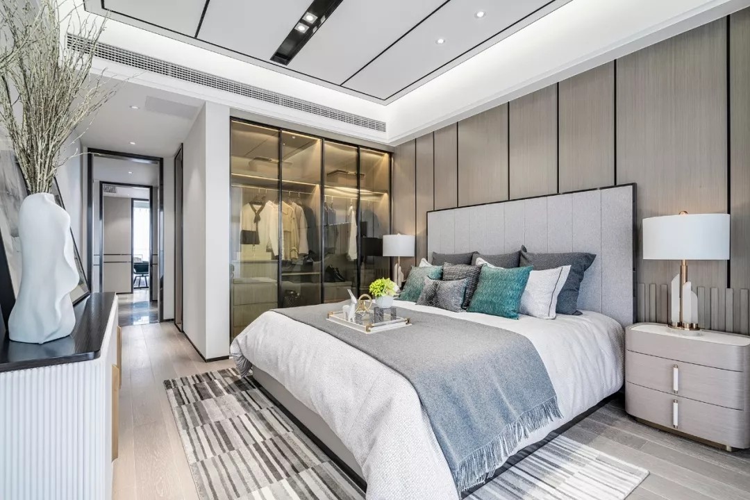 多间卧室风格统一 深浅不一的灰色 在空间内缓缓绽放开来 绿色与植物轻柔点缀 置身其中 体会色彩释放的舒缓感受