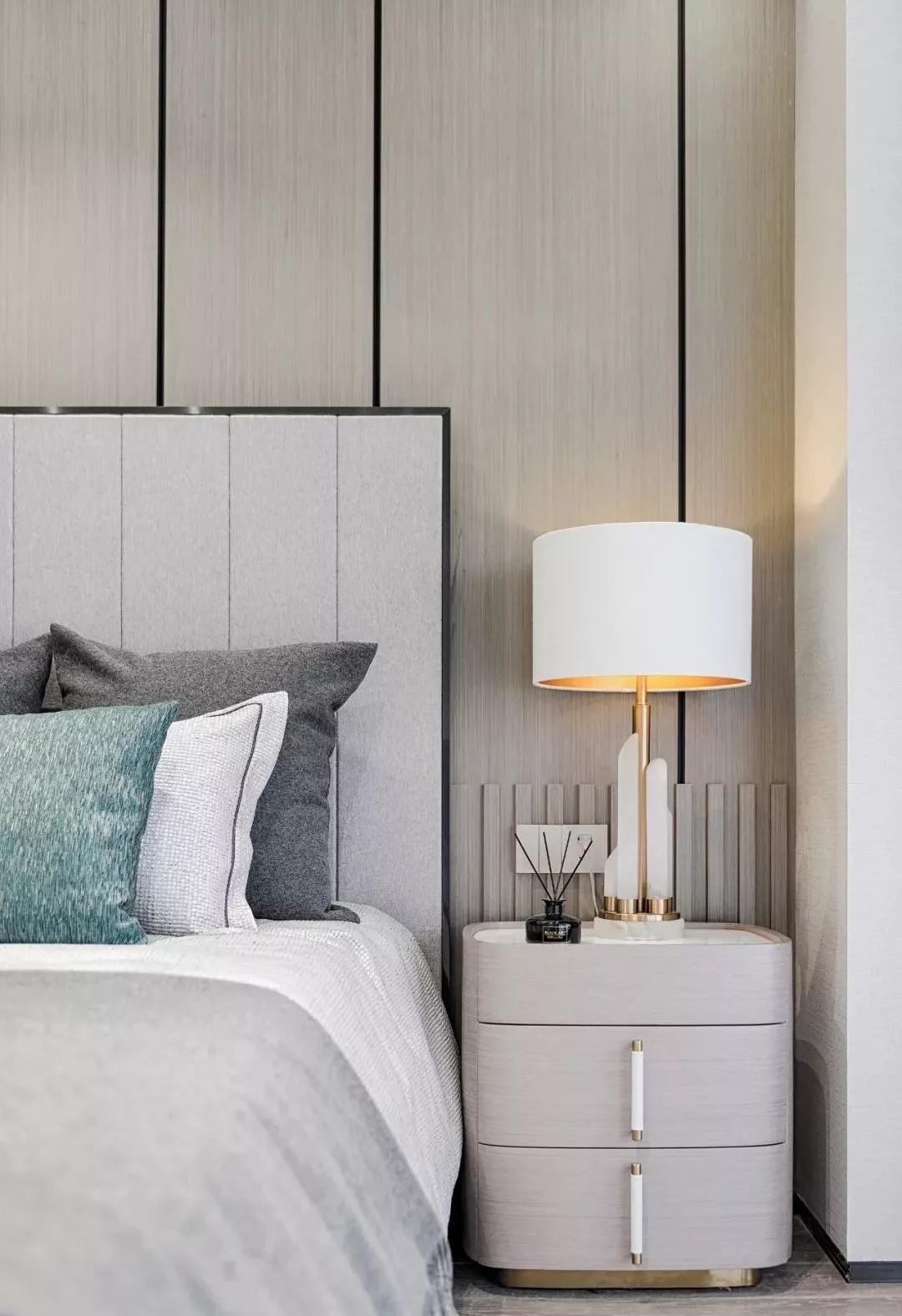 色彩在这个空间 达成一种共生且互补的有机关联 在形状、线条、材质的组合中 淬炼出独有的空间美学 现代轻奢于细节慢慢体现
