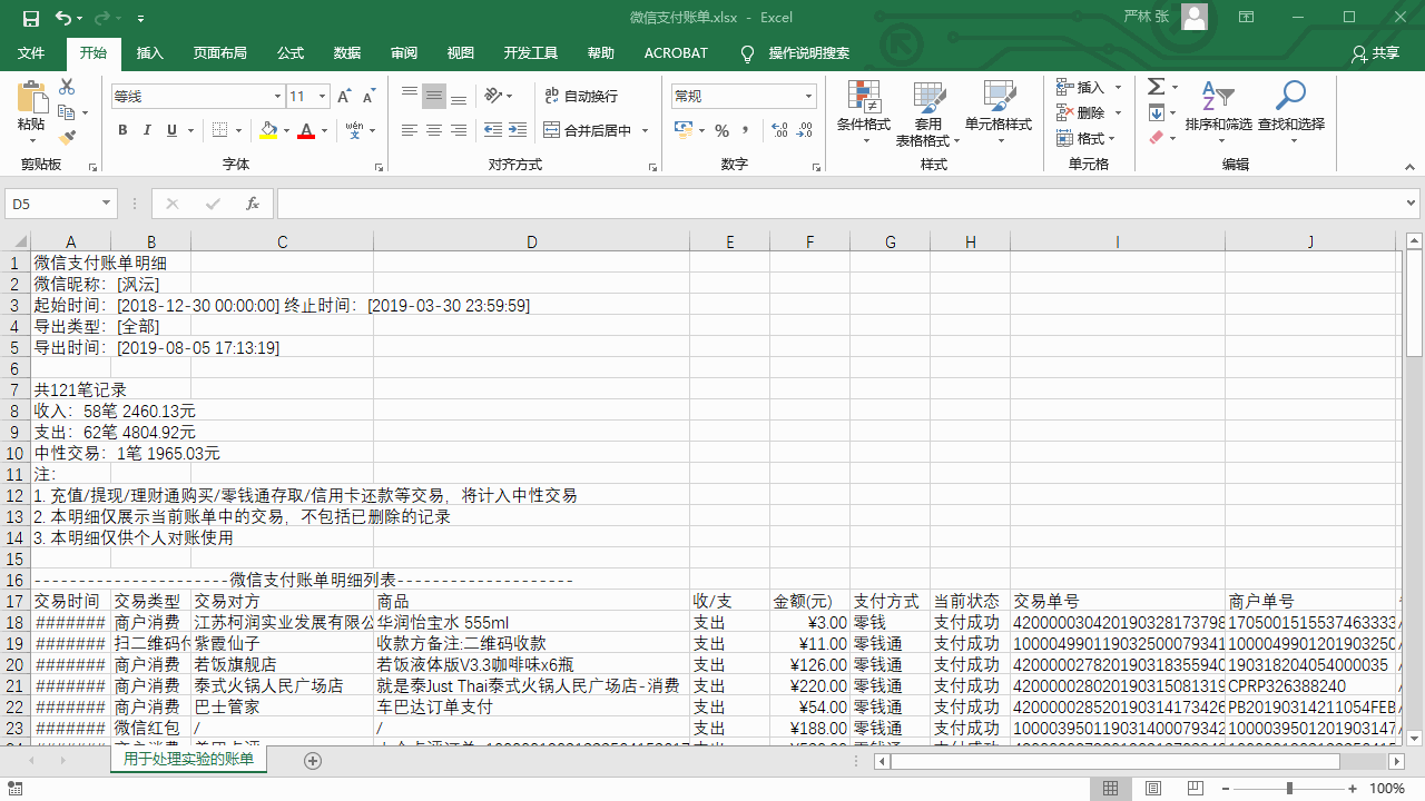 那么和支付宝并列的另一个国民级支付方式就是微信支付了,而微信也可以导出 3 个月以内的账单数据(方法见下文)。所以我们可以通过类似的方法,来提高利用微信记账的效率。