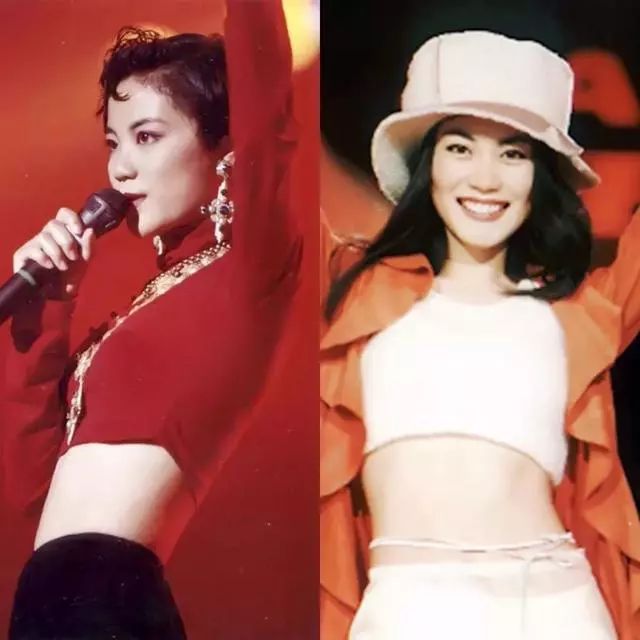 年轻时的王菲敢穿又会穿,今年流行的露肚脐穿,王菲早年也是穿过的,红色的短款上衣+黑色下装,这个耳饰和发型超级给力,好像一下子又回到了90年代。