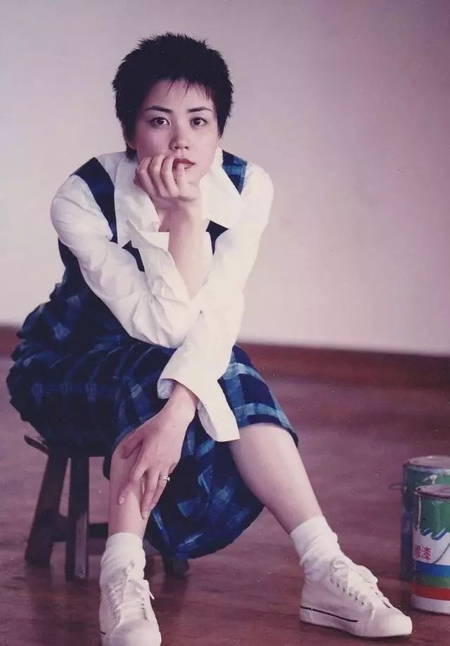 看看王菲这个短发,是不是像个假小子呢,白衬衣+蓝色格子吊带裙,满满都是胶原蛋白的痕迹,小白鞋真是时尚界的永恒经典单品,怕是哪个明星没有一双了。