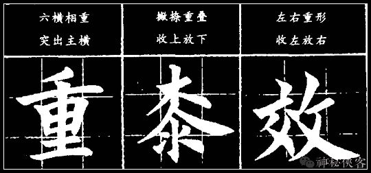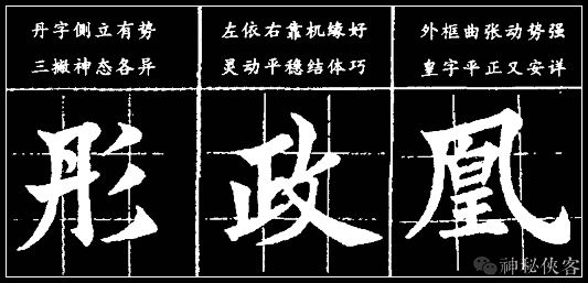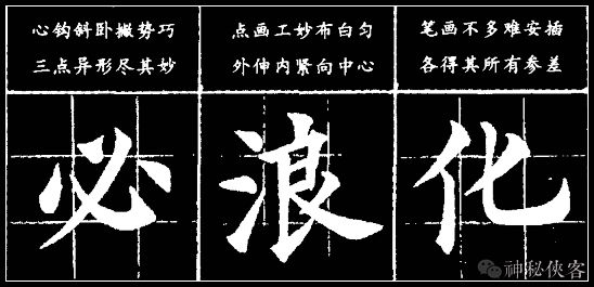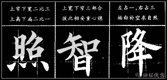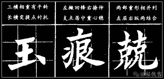 任何事物都是有主有副、有实有虚的,楷字的结构也是如此。主要笔画是支撑字的大间架的,像房子的梁柱,而副笔则像房子的橡木门窗。上下左右各个部位也有主有副,所以要做到主笔、主体结构要突出,而副笔从属结构要相对收敛而作好配合。有笔画者为实,无笔画者为虚,实者收敛,虚者放纵,要有意识地进行调节,这才能收放得宜和谐自然。