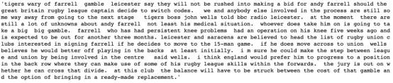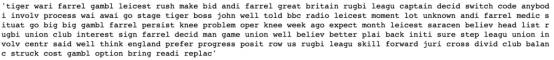 最常出现的词是“plai”、“游戏 (game) ”、“运动员 (player) ”、“胜利 (win) ”、“比赛 (match) ”、“英格兰 (England) ”等。