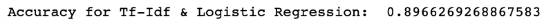 print('Accuracy for Tf-Idf & Logistic Regression: ', scores.mean())