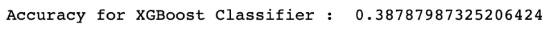 print('Accuracy for XGBoost Classifier : ', scores.mean())