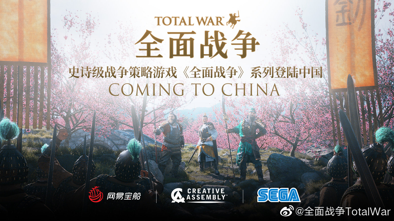 8 月 5 日,@全面战争 官方宣布,网易与世嘉及 Creative Assembly 将开展长期战略合作,将《全面战争》系列游戏正式引入中国。官方表示所有海外平台的用户将不会受到任何影响,所有《全面战争》系列产品都可以正常的购买/下载/体验。网易将作为中国地区的发行商,正式发布《全面战争》系列游戏,为数十款经典作品带来官方中文版本,提供专业细致的中文本地化支持,并致力于《全面战争》中文玩家社区建设。