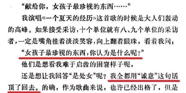 山口百惠很反感赤裸的问题,她总会用“诚意”作为回答搪塞回去。