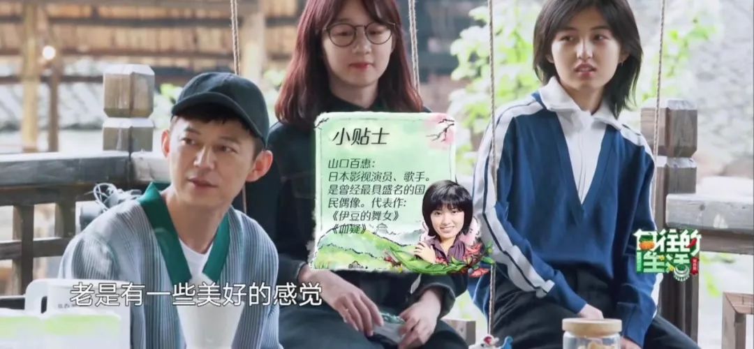 在前段时间的综艺节目《向往的生活》中,黄磊说短发齐肩的张子枫很像山口百惠。