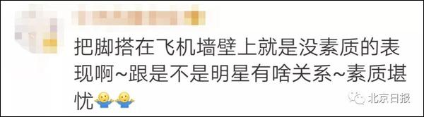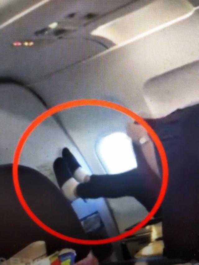 据网友曝光的这段视频显示,在飞机上,一名空姐掀开帘子后,身穿一件灰色T恤,下身搭配黑色长裤的涂磊走进来,全程表情严肃地回到座位上后,顺势把穿着拖鞋的双脚蹬到了飞机舱壁上。