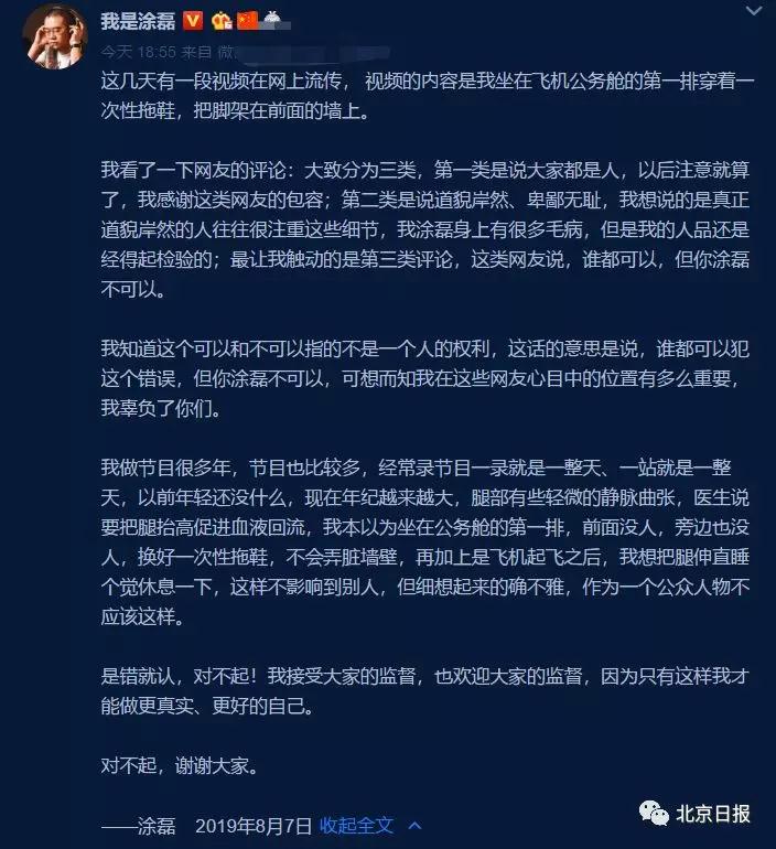 最后,涂磊也承认,作为公众人物,这样的行为确实不雅。