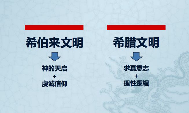 希伯来文明,是犹太救赎信仰,是神的天启和对上帝的虔信,而希腊文明,则是哲学思辨下的求真意志和理性逻辑。