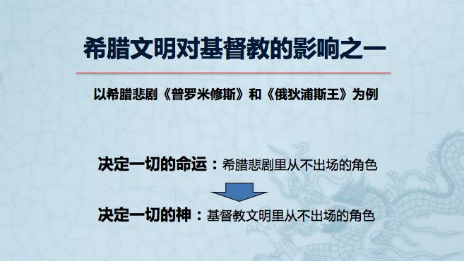 所以希腊悲剧和希腊神话中最重要的“命运”这个概念的形成,最后影响到基督教“上帝”这个概念的出现。