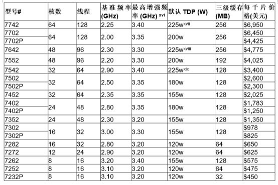 单路旗舰型号是7702P,规格与7702完全一致,价格从6450美元降到了4425美元,作为64核128线程的服务器处理器,这个价格很有诱惑力。