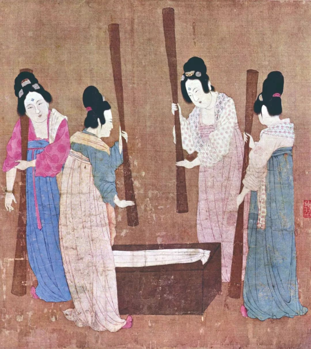 蚕茧煮好后,要从中抽出蚕丝。在中国古代,人们用手在千丝万缕的蚕丝中找到丝头,然后抽出蚕丝,并将蚕丝卷绕在盆、筐等器具上,现在抽丝已经实现自动化,大多利用机器操作,但原理和古代的手工操作是一样的。