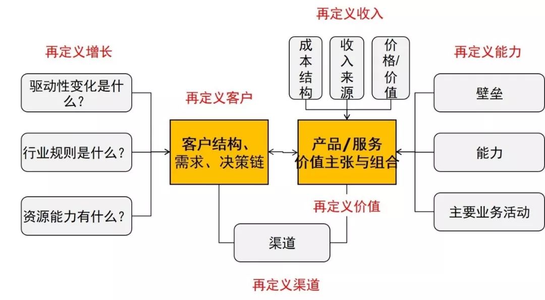 首先是定义增长点——这是战略分析,驱动性变化是什么?行业规则是什么?资源能力有什么?那么公司战略基于的增长点是什么?