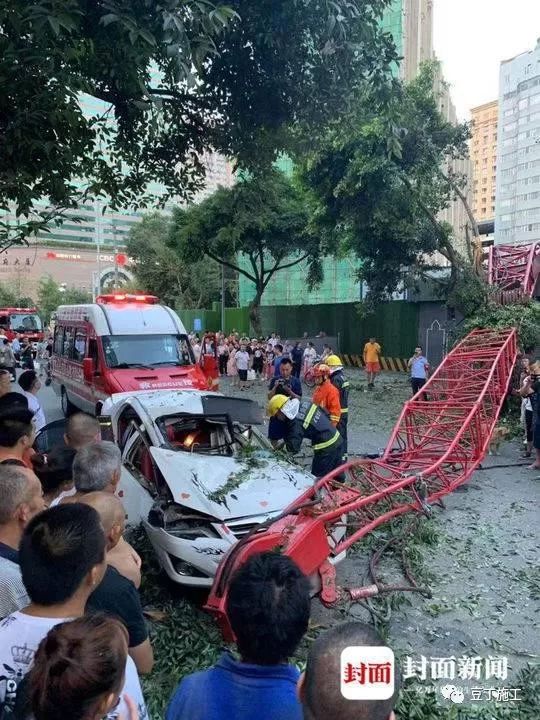 8月7日,在紧邻成都春熙路的暑袜中街一工地塔吊发生倒塌,倒塌的塔吊砸中了路过的轿车,因为塔吊的体积大白色轿车直接被砸扁了。