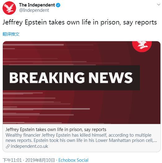 一则突发新闻打破了周末宁静:爱泼斯坦(Jeffrey Epstein)在牢中“自杀”!