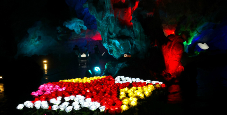 冬暖夏凉,流光溢彩。即兴吟诗一首,献丑:“久慕阳羡今成行,清荷曼舞簇氿滨。玉笋钟乳飞瀑叠,溢彩流光疑仙境。”