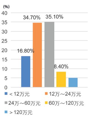 (4)绝大部分家庭年收入在24万元以上(图9)。