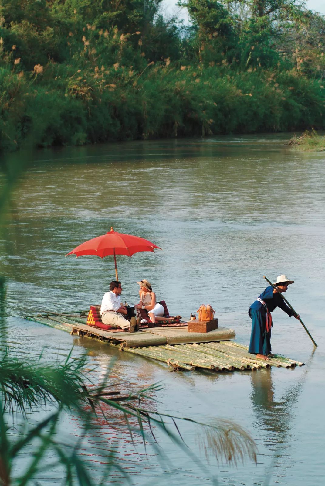 坐落于金三角中心地带郁郁葱葱的竹林,同时眺望到泰国、缅甸和老挝这三个国家。乘坐轻巧的竹筏穿越湄公河,穿过竹林和藤蔓青绿的吊桥,便抵达一顶一顶白色帐篷组成的别墅酒店营地,是野奢酒店的极致代表,也被誉为“全球最好的的四季酒店”。