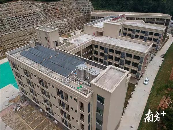 新建的惠州市惠城区第四十六学校已经基本完工,教职工楼顶安装了太阳能设备。
