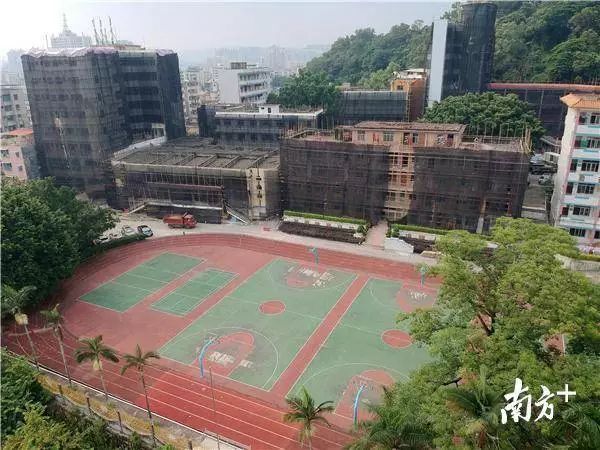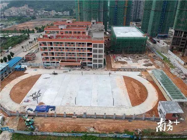 惠州市第十一小学南校区教学楼已经完工,办公楼和运动场还在建设中。