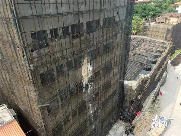 博罗中学初中部对旧楼进行升级改造,目前工人正在加紧涂刷外墙。