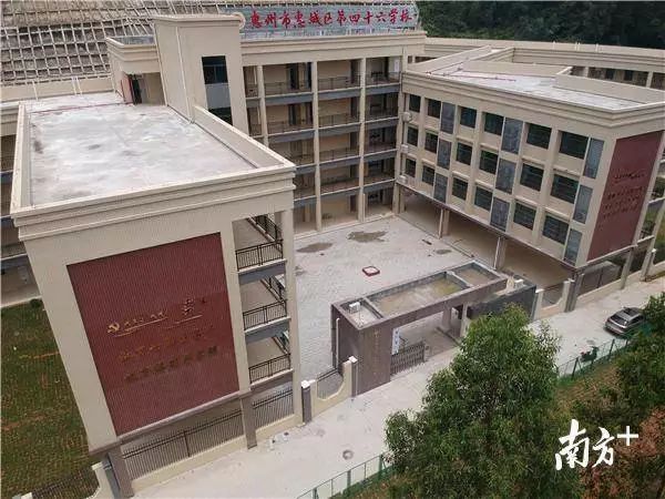 在惠东县,西枝江中学建设进展顺利,教学区的7栋综合教学楼已经基本完成,共设60个初中教学班,工人正在抓紧建设配套附属设施,确保9月份如期开学……