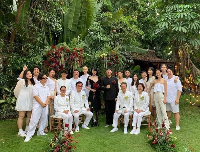 即使是结婚,崔素拉也将暗黑系贯彻到底,两个人从头到脚一身标志性的黑色礼服就把婚给结了,简直朋克到不行。但镜头下的崔姐,脸上还是难以抑制的小女人风情,甜甜爱情就快要溢出屏幕了。
