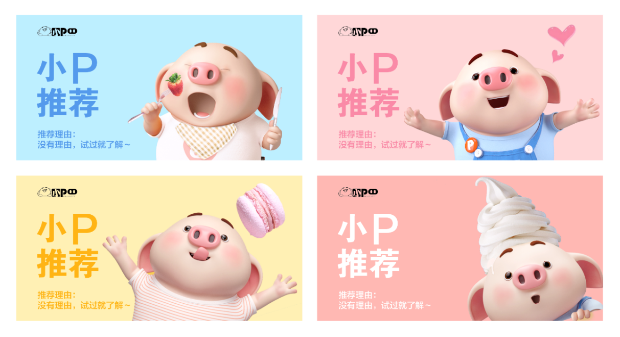 这家苏宁小店里还有猪小屁店员的立牌画面,并且另外增加了猪小屁的吊旗、猪小屁海报以及猪小屁的欢迎地贴画面这些设计元素,从各个细节表达出“这是猪小屁的店”。