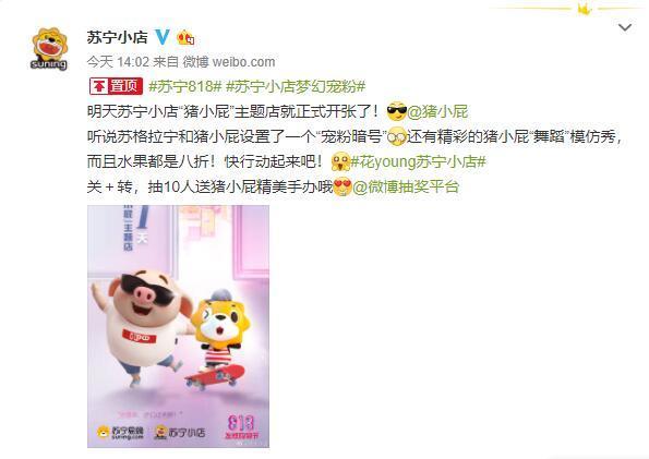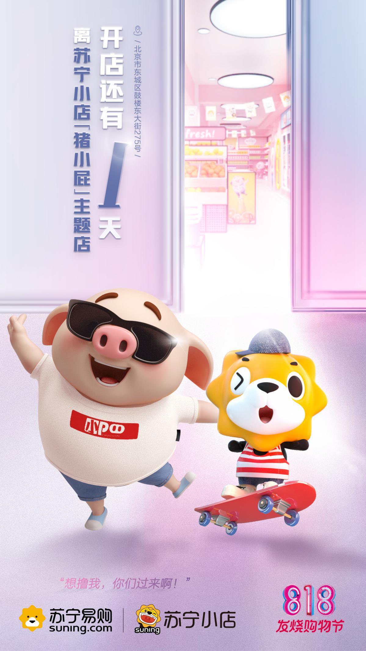 据苏宁小店的官方微博透露,以“猪小屁”为主题的苏宁小店将于8月17在北京东城区的鼓楼东大街正式开业。店里不仅有萌系猪小屁,还有可爱的苏格拉宁,他们一起设置了一个“宠粉暗号”等你来破解。除此之外,还有精彩的猪小屁“舞蹈”模仿秀,让猪小屁带你一起舞动夏天,而且水果都是八折,不要错过啦!