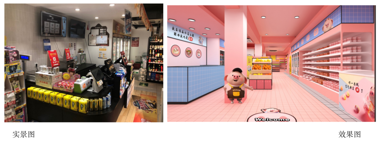 早在这之前,苏宁小店也提前曝光了猪小屁的店面设计效果图,让我们一睹为快。