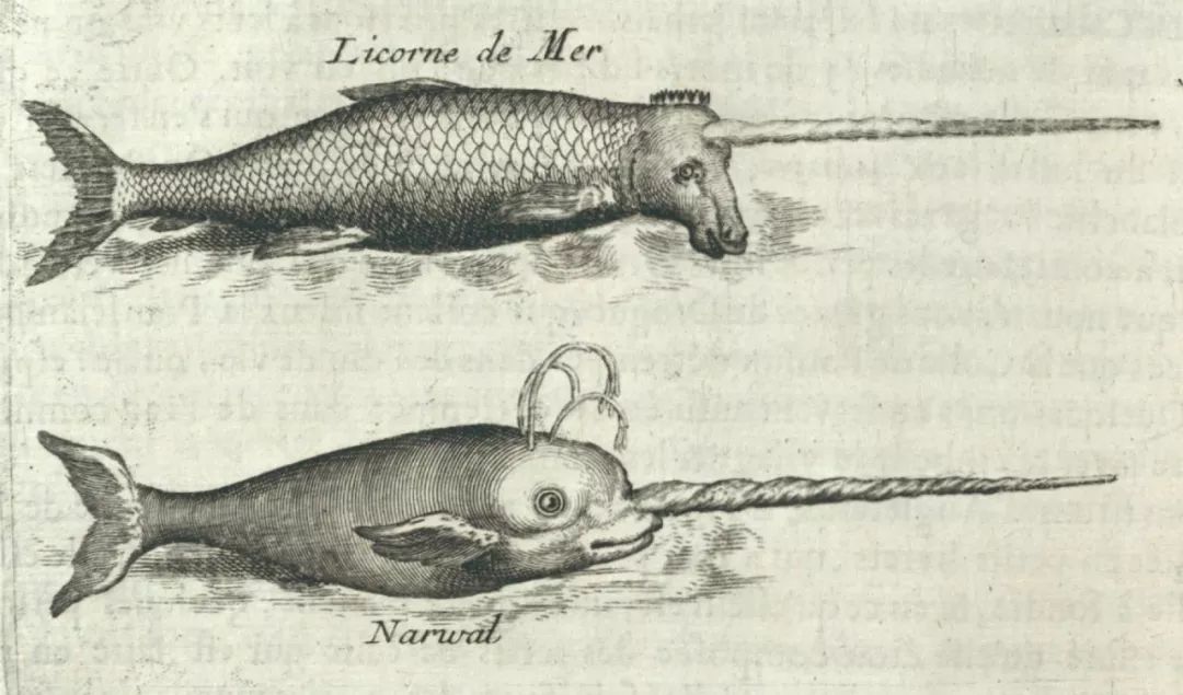 而锯角鲸的身体则来自另一种海洋动物——独角鲸。这种生活在北极海域的鲸体长4到5.5米,它们的头上长着一条空心的螺旋纹路的长“角”,很容易让人联想到传说中的独角兽。