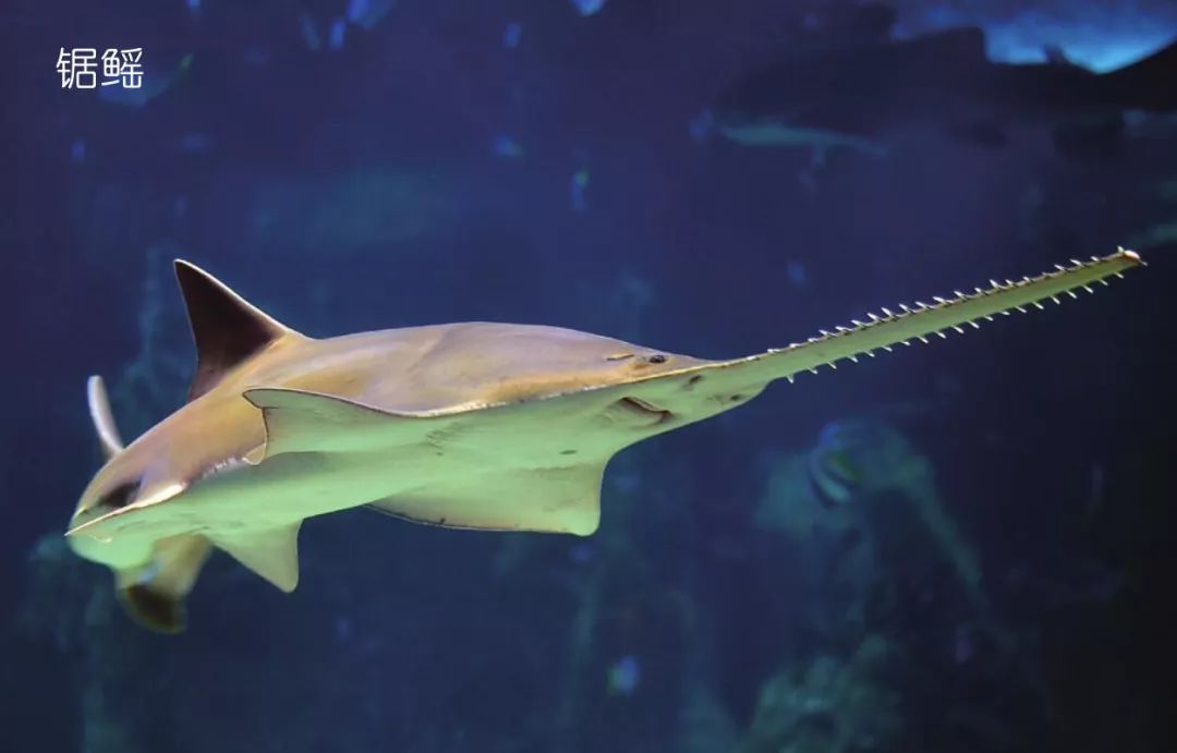 锯鳐是世界上最大的鱼类之一,个体体长最长可达9米。它们与其他普通鱼最大的不同就是有一个锯子状的长长的吻,这个吻约为体长的三分之一。锯角鲸的“大锯子”可能就是来自锯鳐。