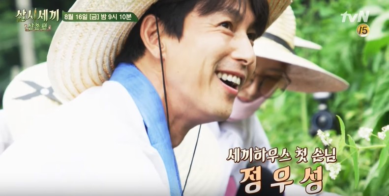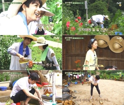 除了干农活之外,郑雨盛在节目中还成为了厨房小能手,烤面包、磨咖啡、泡茶,样样精通,让人怎么能不心动。作为韩国地位极高的男演员,加上外貌帅气地不像凡人,一直以来郑雨盛都给人一种遥不可及的感觉,在韩国和李政宰、河正宇、赵寅成等人被誉为是“下凡的男神”。