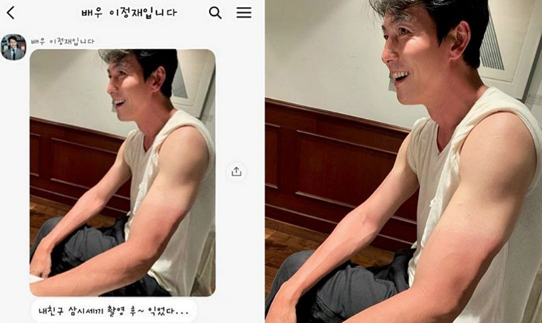 日前,韩国演员李政宰的经纪公司公开了李政宰和挚友郑雨盛的私密聊天记录,引起了网友的热议。在聊天对话中,郑雨盛和李政宰分享了他的肌肉照片,照片中郑雨盛身材非常健硕,一点也看不出他已经46岁了。