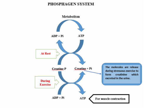 肌酸参与的供能系统叫磷酸肌酸供能系统(被大家广为流传的ATP君就是其中的明星产物)是一种无氧供能系统,本质上是磷酸肌酸和二磷酸腺苷之间高能磷酸集团的转移.三磷酸腺苷—磷酸肌酸系統(亦即 ATP-PC 系统)就具有供能总量少、持续时间短、输出功率最快,不产生乳酸、不需要氧气参与的特点,所以是肌肉进行爆发力运动初期的能量来源。