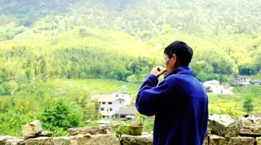 △茶农喝茶背影