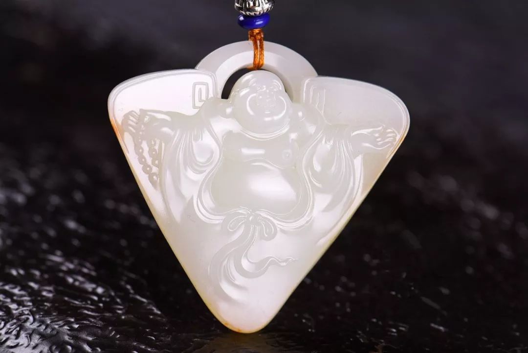 上图就是早期的弥勒佛挂件,受限于玉雕设备和技术,生产力低下,所以在今天看来惨不忍睹。今天的佛公,生产力的进步也让传统题材在审美上看起来能够接受。见下图▼