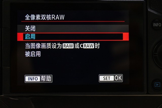 从5D4开始到后来的EOSR,都具备了这项技术。全像素双核RAW的名称是DPRAW,普通的RAW文件大约是30MB左右,而这个DPRAW的体积已经飙升到60-70MB,可见它记录的信息刚好是两倍。