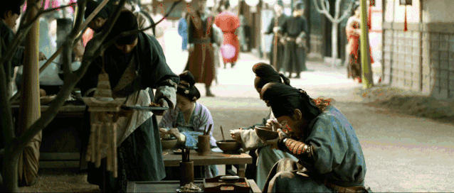 ▲《长安十二时辰》中靖安司的工作餐:一碗粥配一个胡饼