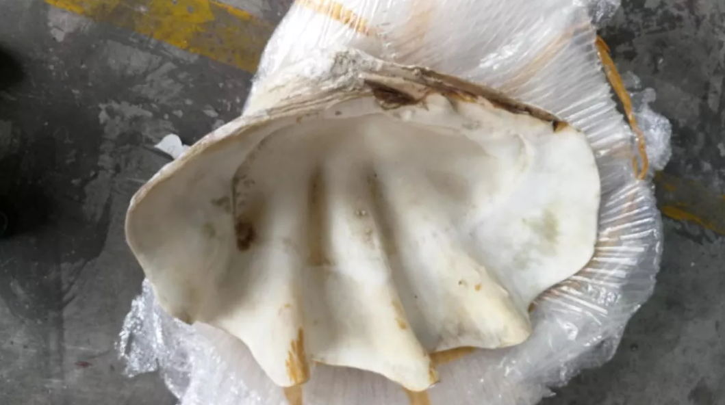 8月7日,天津海关所属新港海关关员在对一名中国籍旅客由印度尼西亚运送回国的行李中,查获濒危动物砗磲标本1件,重达120斤。