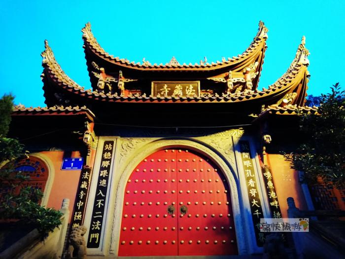 法藏寺建于1943年,其历史并不长,但在灯光照耀下颇有“古刹”风范。