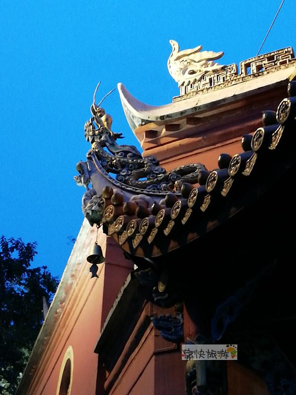 后山门上的飞檐翘角、琉璃瓦当和风铃