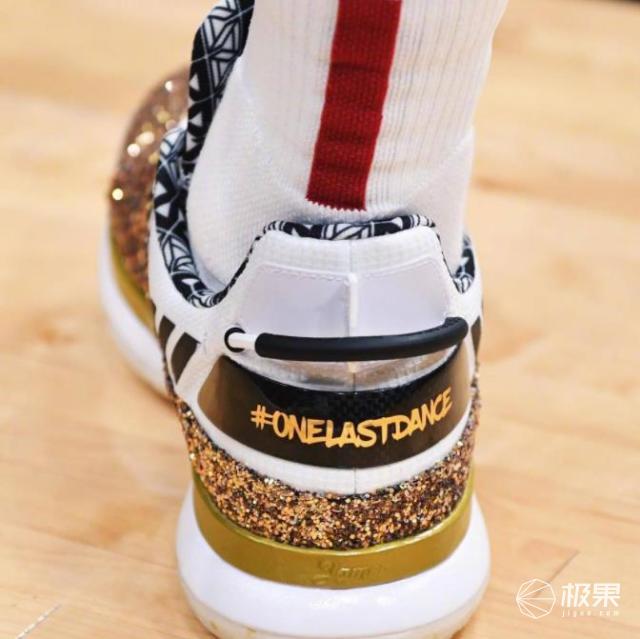 这两款有黄金元素的战靴,是为韦德职业生涯最后两场比赛所打造的,金色为主题的外观搭配上黑色和白色的元素,实至名归呼应了 one last dance 的主题。