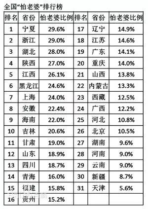 "全国怕老婆排行榜"!