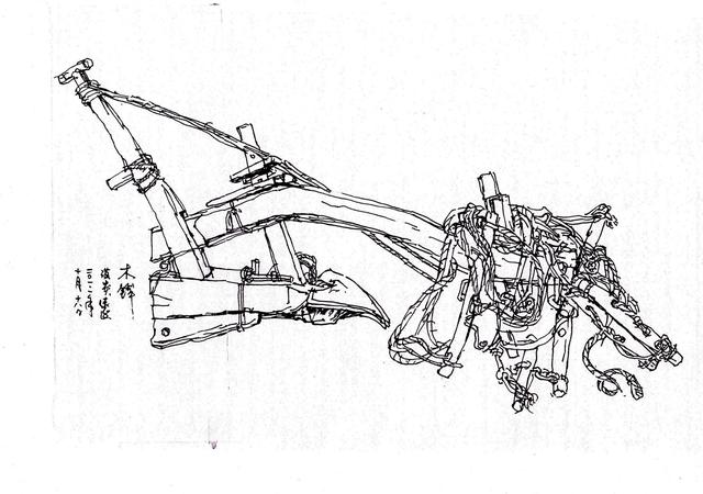 这些犁都是用牛牵拉的。这段记述指出,长辕犁在山间的狭窄田地里使用是不方便的,不如山东省的蔚犁好用。山东省蔚犁的结构尚不清楚,可能它的型辕是短的。犁是专门用来翻扣土壤的,而两脚耧与犁不同,它能在划出浅沟的同时播撒种子。日本几乎从来没有使用过两脚耧这种农具,但中国早在汉代末年,敦煌一带就已使用这种农具了。