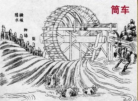 中国在灌溉中也使用了水车,不过这种水车称为筒车。筒车的结构和原理是,在车轮的外圈安装许多小桶,再把车轮的一部分浸没在流水中,流水冲动车轮使车回转,同时浸没在水里的小桶也灌满了水,当灌满水的小桶转到车轮上部时,便开始倾斜,于是小桶里的水便倒进了连接到田里的导水槽内。我想这种简车大概是南宋时有的。